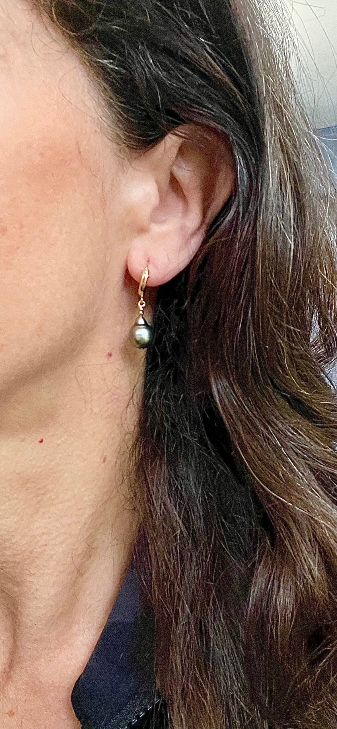 - Made with a 14K Gold fill hoop and Tahitian Pearl teardrops