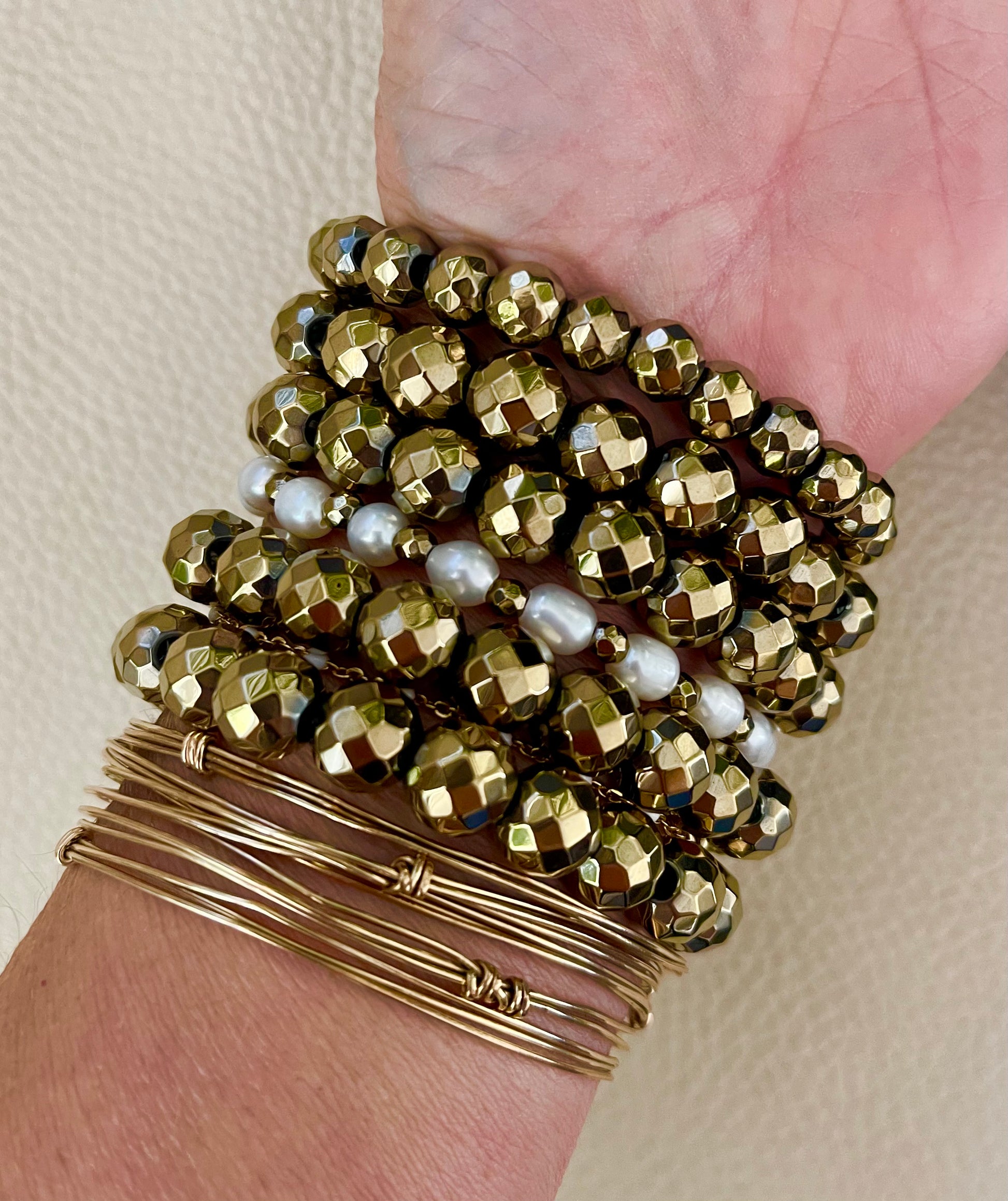 - This is a versatile and Luxe cuff made of pyrite and one large South Sea Pearl